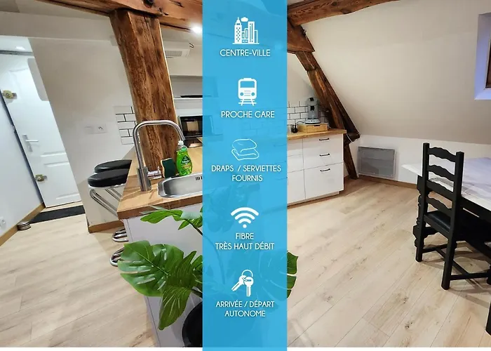 El apartamento Le 6ème ciel de Gutenberg - climatisé dispone de una cocina con un hervidor eléctrico, nevera y un horno. El aeropuerto Tours está a 10 minutos en coche, y la parada de autobús Rempart, justo al lado del apartamento Le 6ème ciel de Gutenberg - climatisé.
